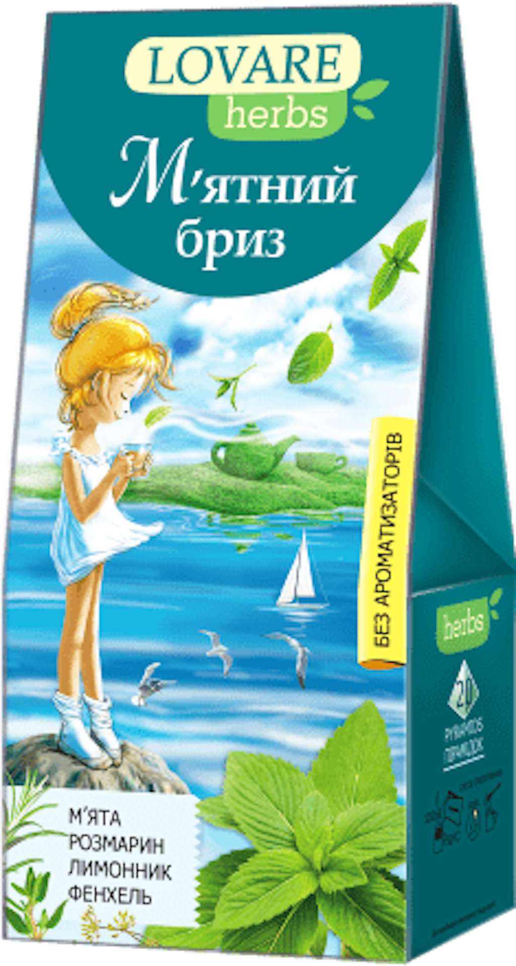 Hackade myntablad (51.5%), hackade nypon (20%), fänkålsfrön (20%), citrongräs (5%), timjan (3%), rosmarinblad (0.5%).