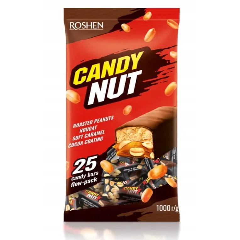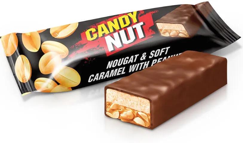 "Candy Nut" av nougat (31 %) och karamell (27 %) med jordnötter (17 %) täckta med kakaoglasyr (25%)