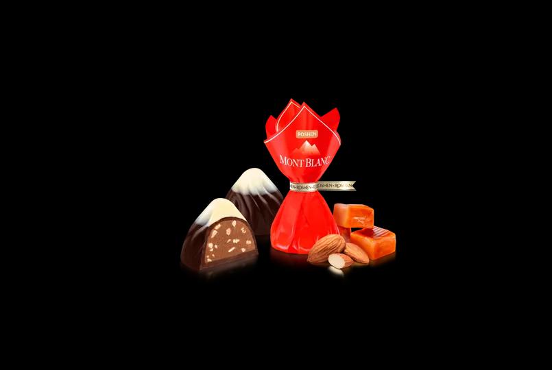 Pralinékonfekt ”Mont Blanc” med karamelliserade mandlar.